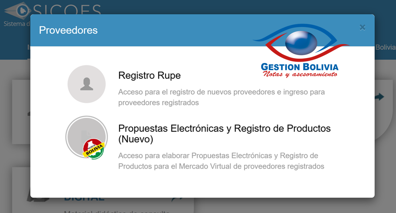 Paso 1: Por la página web www.sicoes.gob.bo, ingresamos a PROPUESTAS ELECTRONICAS Y REGISTRO DE PRODUCTOS