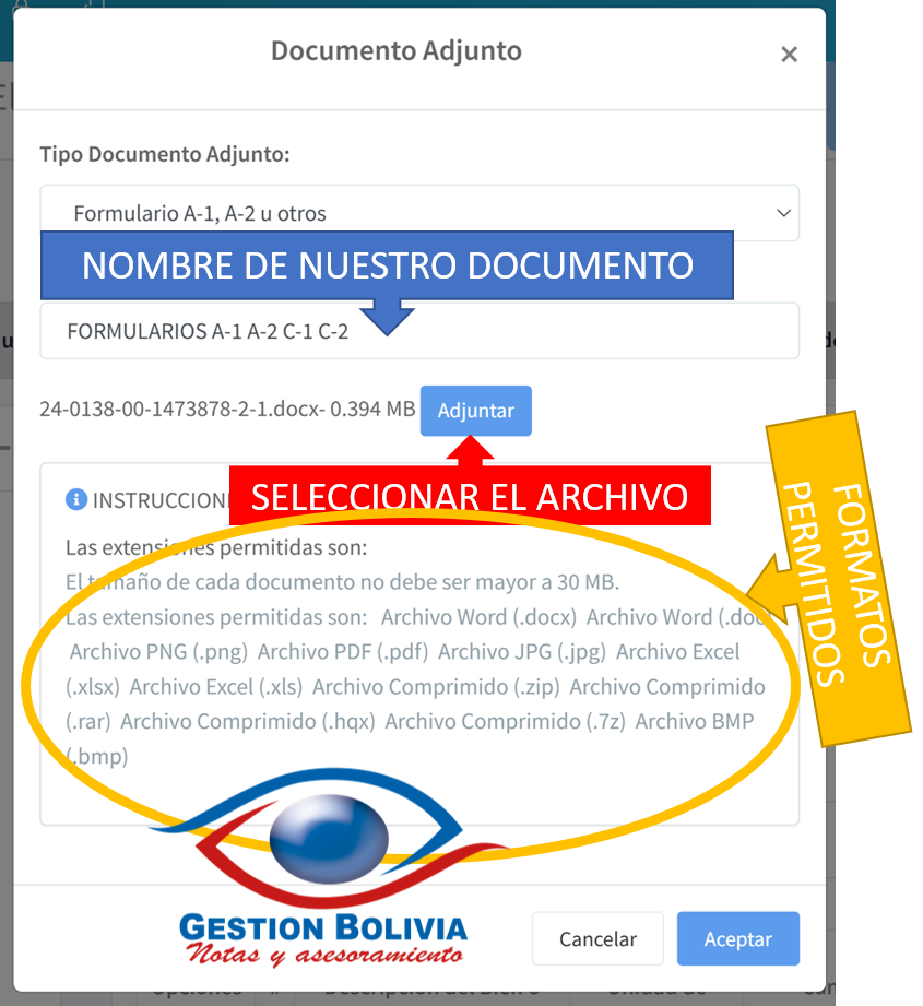Aquí es donde tenemos que cargar los formularios requeridos en el DBC, que ya lo tenemos en formato PDF, el tamaño máximo que se puede enviar es de 30MB.