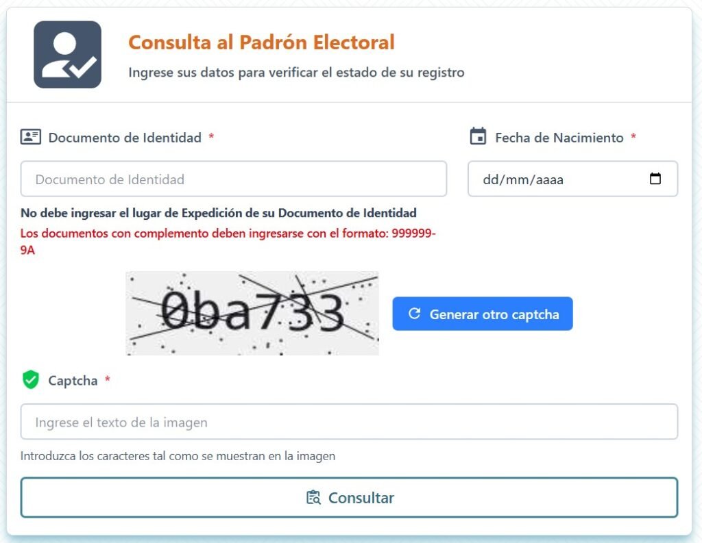 PARA LOS CIUDADANOS EN TERRITORIO NACIONAL: La presentación de reclamos en este periodo deberán de realizarlo de forma física en las dependencias del Tribunal electoral Departamental o Servicio de Registro Cívico más cercano según corresponda.