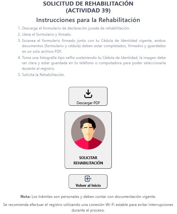 Tercero, hacemos clic en SOLICITAR REHABILITACIÓN