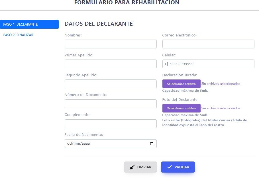 Llenamos el siguiente formulario para la rehabilitación: